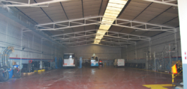 La nave industrial dispone de dos servicios y oficinas en dos plantas.