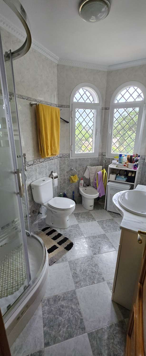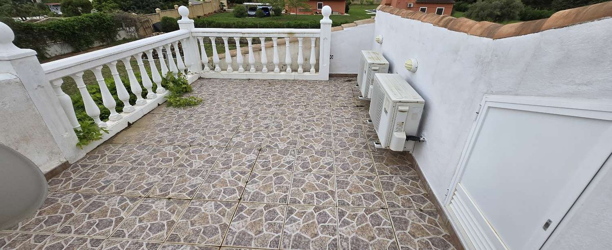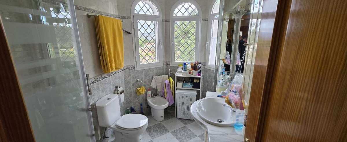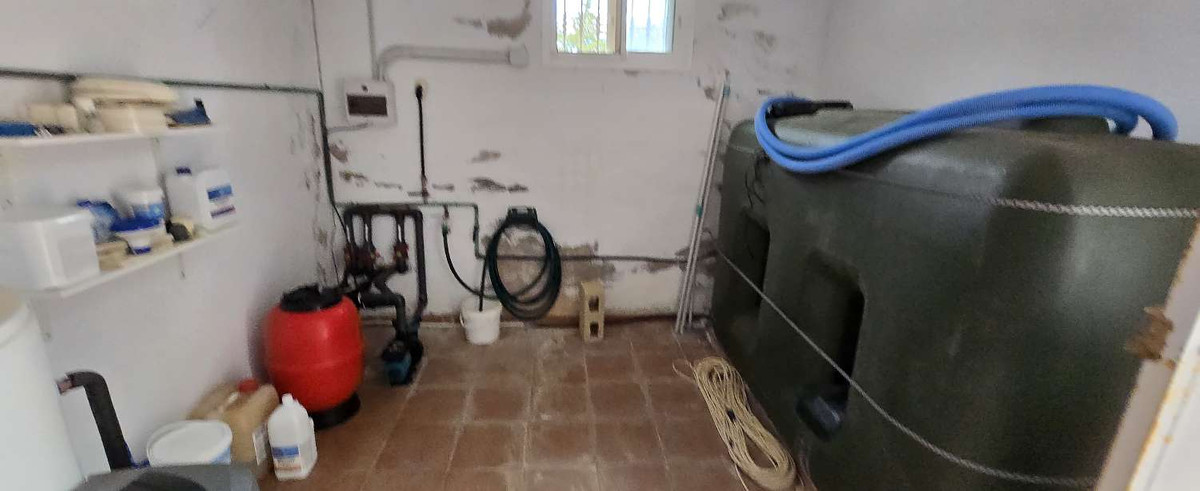 El sótano se divide en un hall con acceso independiente al jardín, con tres dormitorios y un baño, además de un gran trastero y un garaje para varios vehículos con puerta automática. La propiedad está orientada al sur, lo que proporciona luz natural y mucha luz natural en el interior de la vivienda. La parcela está totalmente vallada, con zona de césped, en primera línea de golf, bonitas vistas y varias plazas de aparcamiento en la parcela.