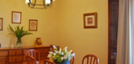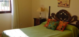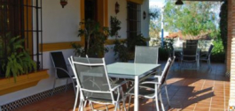 La casa principal, de estilo rústico andaluz, tiene una sola planta. El salón tiene chimenea y zona de comedor. La cocina está equipada con electrodomésticos y zona de lavandería. Un patio andaluz con una fuente une la casa principal con la de invitados. Tiene 3 dormitorios, con armarios empotrados, uno de ellos con baño en-suite y 1 baño separado.