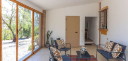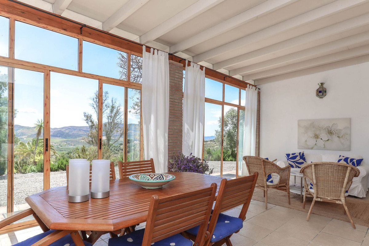 Un espacioso invernadero se extiende a lo largo de la parte delantera de la casa, actualmente utilizado como una relajante zona chill-out – el lugar perfecto para disfrutar de las amplias vistas del valle. Este espacio también podría utilizarse como comedor. En el corazón de la casa hay un acogedor salón con una chimenea tradicional para las noches más frías de invierno. La cocina abierta conecta perfectamente con el salón y también conduce a un segundo invernadero en el lateral de la casa.