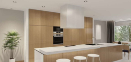 – Cocina totalmente equipada con puertas de marco de aluminio y revestida con COVERLAM (Color a elegir)