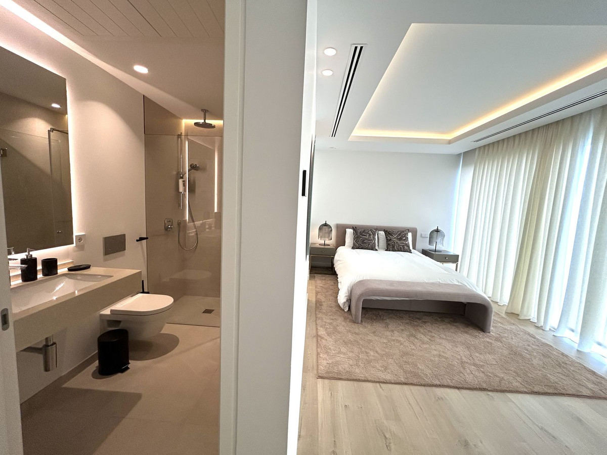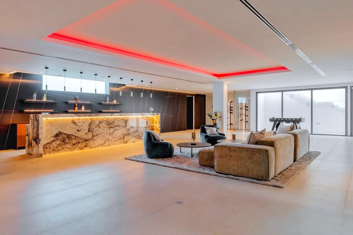 La villa está diseñada para ofrecer el máximo confort y entretenimiento. Ofrece siete lujosos dormitorios, cada uno con su propio cuarto de baño, lo que proporciona total privacidad y comodidad. Además, hay aseos para invitados tanto en la planta baja como en el sótano. La cocina ampliada es el sueño de cualquier chef, ya que cuenta con una gran isla, un frigorífico y congelador adicionales de tamaño americano, un gran refrigerador de vidrio, una placa de cocina oculta y todos los electrodomésticos Miele.