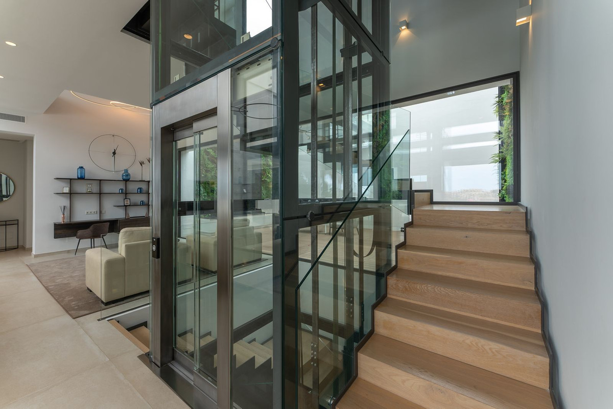Esta obra maestra de 760 m² es una mezcla única de excelencia en el diseño, detalles inigualables y composición armoniosa. Cuenta con los mejores materiales, equipamiento de primer nivel y todas las características de lujo que cabría esperar de una casa construida a medida. La propiedad incluye un nuevo ascensor de cristal que conecta los tres niveles, paneles solares, un vanguardista sistema de domótica con integración de Control4 (lo último en tecnología estadounidense) y todas las paredes mejoradas con tratamientos de inyección para evitar cualquier posible problema de humedad.