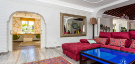 Villa de un nivel del mundialmente famoso arquitecto Frank Lloyd Wright *. Ideal como vivienda familiar para ella, él y los niños. La villa ofrece una increíble calidad de vida, además de una gama de ocio, aficiones y deportes, todo bajo un mismo techo. Excelente ubicación en una tranquila zona residencial en una parcela de 4500 m² en Rancho Domingo, Benalmádena.