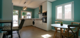 La propiedad ha sido completamente renovada y se distribuye en dos plantas. Ofrece un luminoso salón con techos de doble altura y chimenea, una moderna cocina con acceso al jardín, y espacios bien comunicados que invitan a disfrutar tanto del interior como del exterior.