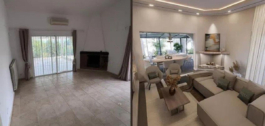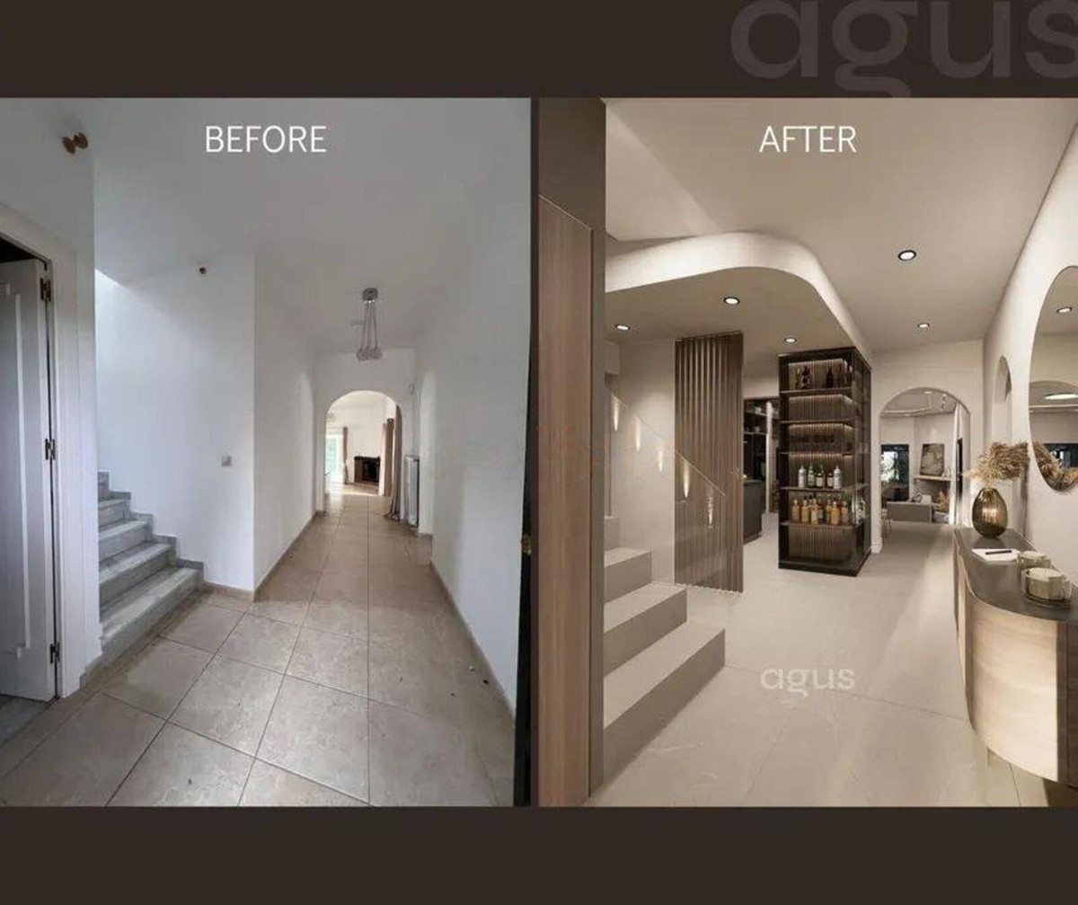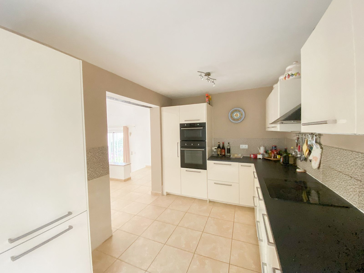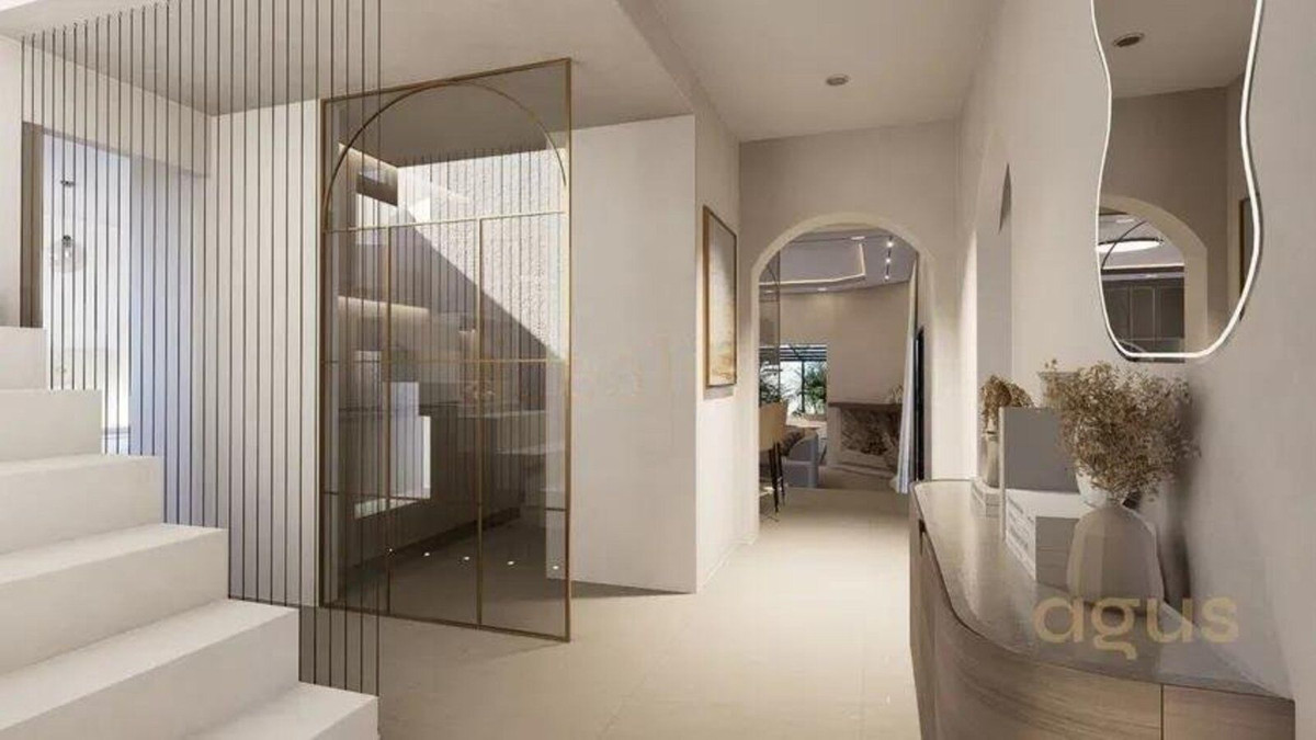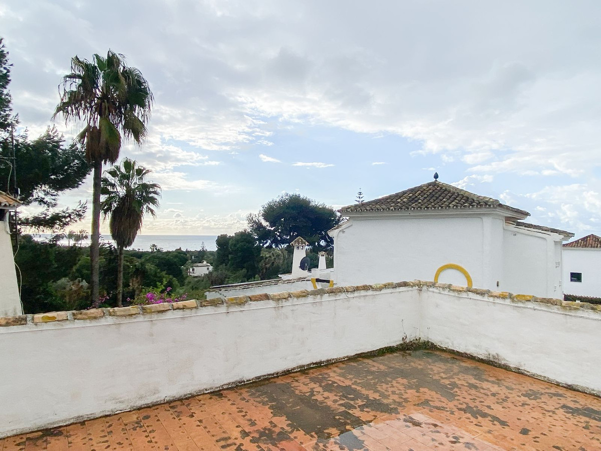 La propiedad presenta un diseño clásico con un amplio salón distribuido en dos niveles y una cocina independiente. Actualmente cuenta con tres dormitorios, todos con baño en suite, y espacio suficiente para añadir un cuarto dormitorio tras una reforma. Amplias terrazas y un jardín de invierno aportan luz natural y versatilidad al espacio, mientras que el salón, con su acogedora chimenea, es perfecto para las noches más frescas. El dormitorio principal se encuentra en la planta superior y cuenta con un amplio cuarto de baño y una terraza privada. Toda la casa está equipada con aire acondicionado para mayor comodidad.