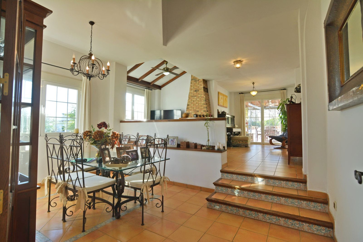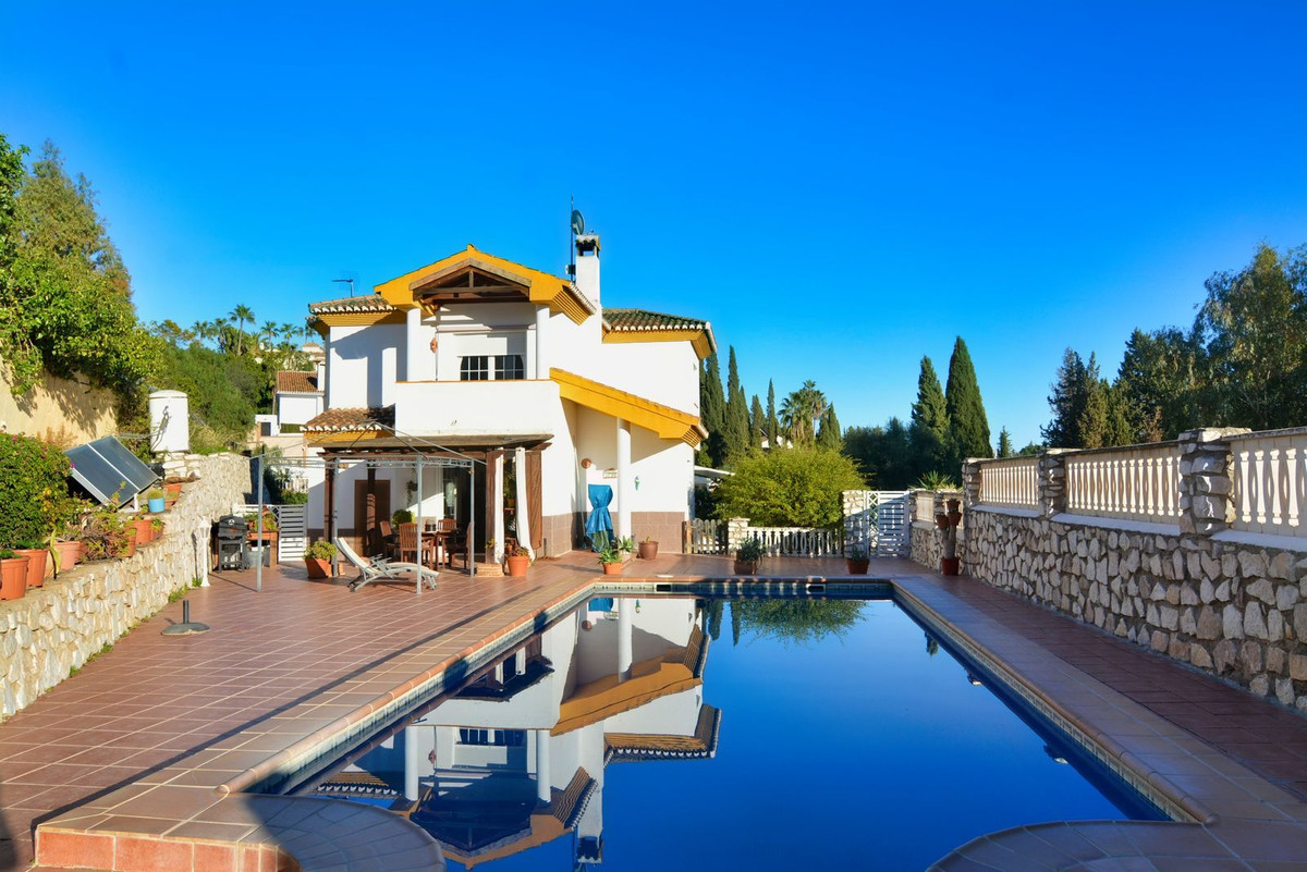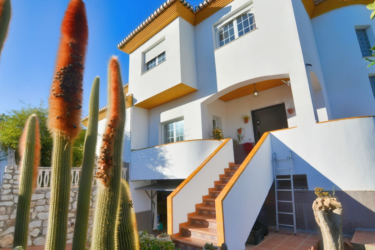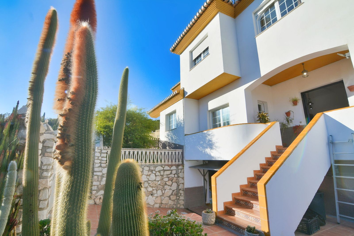 En la primera planta se encuentra el amplio salón de doble altura con acceso al porche y a la piscina, este es perfecto para disfrutar con amigos y familia de un maravilloso porche con sol todo el día. Además, la amplia cocina con lavadero privado y acceso a la zona exterior es ideal, también encontrará un 1 dormitorio con armarios empotrados y un baño completo, mientras que en la segunda planta hay 4 dormitorios y 2 baños completos. El dormitorio principal tiene baño en suite y terraza con vistas a la piscina y Fuengirola.