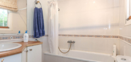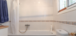 El dormitorio principal también da a la terraza e incluye un amplio cuarto de baño con bañera de esquina.
