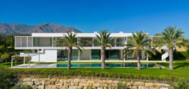 Rebosante de opulencia y refinamiento, esta excepcional villa redefine la noción misma de la vida en un complejo de golf de lujo. Situada en una parcela elevada, ofrece impresionantes vistas panorámicas al campo de golf y al Mediterráneo, mientras que sus amplias zonas exteriores abarcan jardines meticulosamente cuidados y una magnífica piscina. Envuelta por exuberantes palmeras y abundante flora, esta residencia ofrece un exquisito santuario al aire libre para disfrutar todo el año. Bañada por la luz natural, gracias a la abundancia de puertas acristaladas de suelo a techo, la planta baja conecta a la perfección con el jardín, fomentando un armonioso flujo interior-exterior. La propiedad se distribuye en 3 plantas, con un sótano que alberga una lavandería, un cuarto de instalaciones y una bodega hecha a medida. El acceso al sótano se integró hábilmente en la propiedad a través de una puerta cilíndrica oculta. Los espacios interiores, de elegante diseño, situados en la planta baja, presentan tonos neutros suaves y materiales únicos que imprimen a la vivienda un sentido de individualidad sin parangón. La cocina, equipada con electrodomésticos Gaggenau de alta gama, presenta armarios hechos a medida y una elegante isla de cocina, mientras que el suelo de madera clara de toda la casa evoca un ambiente sereno y tranquilo. Los cuidados paisajes de la propiedad, cuidadosamente seleccionados dentro de sus límites, crean un cautivador telón de fondo visible desde la planta baja. La planta superior está dedicada a los dormitorios, cada uno con su propia terraza privada y separados por impresionantes tabiques blancos. La destreza arquitectónica de Vicens & Ramos es evidente desde todos los ángulos, con la impresionante entrada de la propiedad dejando una impresión duradera en todos los que llegan. Con su privilegiada posición en primera línea de golf, sus impresionantes vistas y su inquebrantable compromiso con la excelencia, esta obra maestra se erige como una residencia verdaderamente incomparable dentro del exclusivo complejo Finca Cortesín.