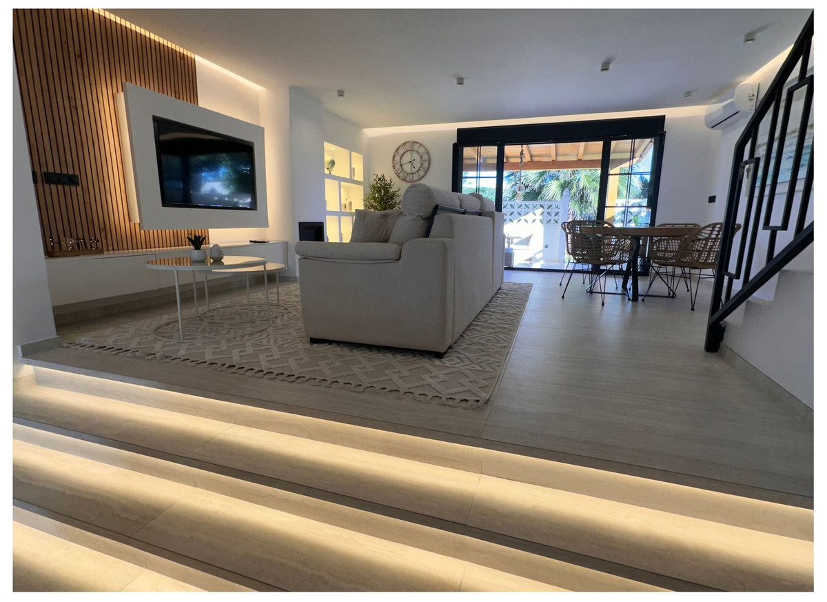 Situada en una zona privilegiada, esta impresionante villa ha sido totalmente renovada, ofreciendo la combinación perfecta de diseño elegante, amplitud y funcionalidad. Con una distribución optimizada y acabados de alta calidad, esta propiedad proporciona una sensación de tranquilidad y confort, rodeada de naturaleza y a sólo 5 minutos de la playa.