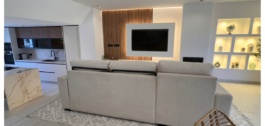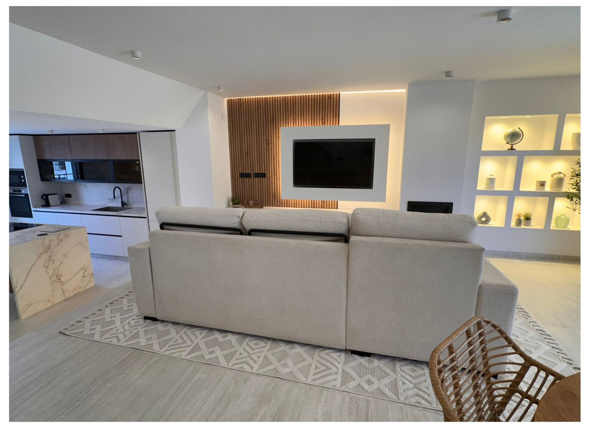 Amplio y luminoso salón-comedor, con ventanales que permiten que la luz natural inunde el espacio y proporcionan acceso directo a una terraza privada, perfecta para relajarse o recibir invitados.