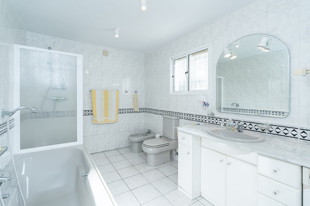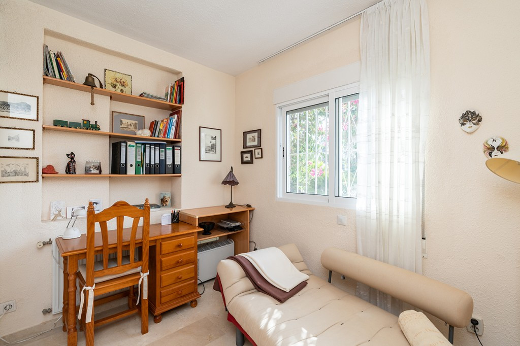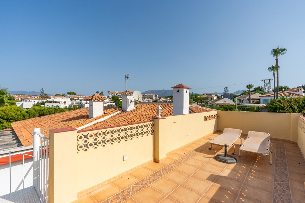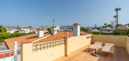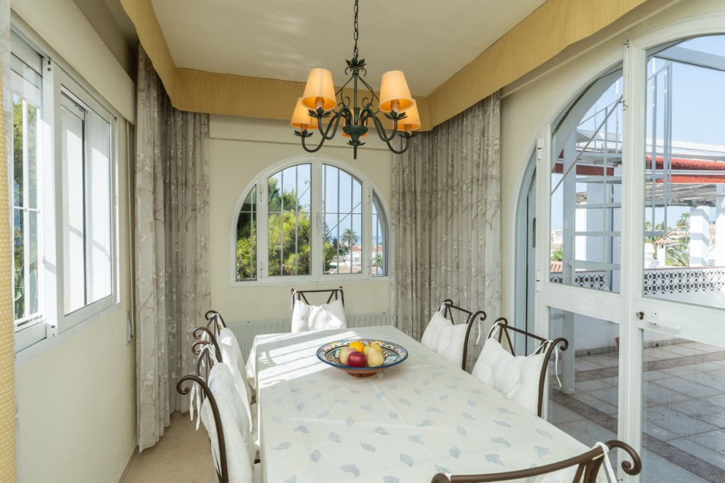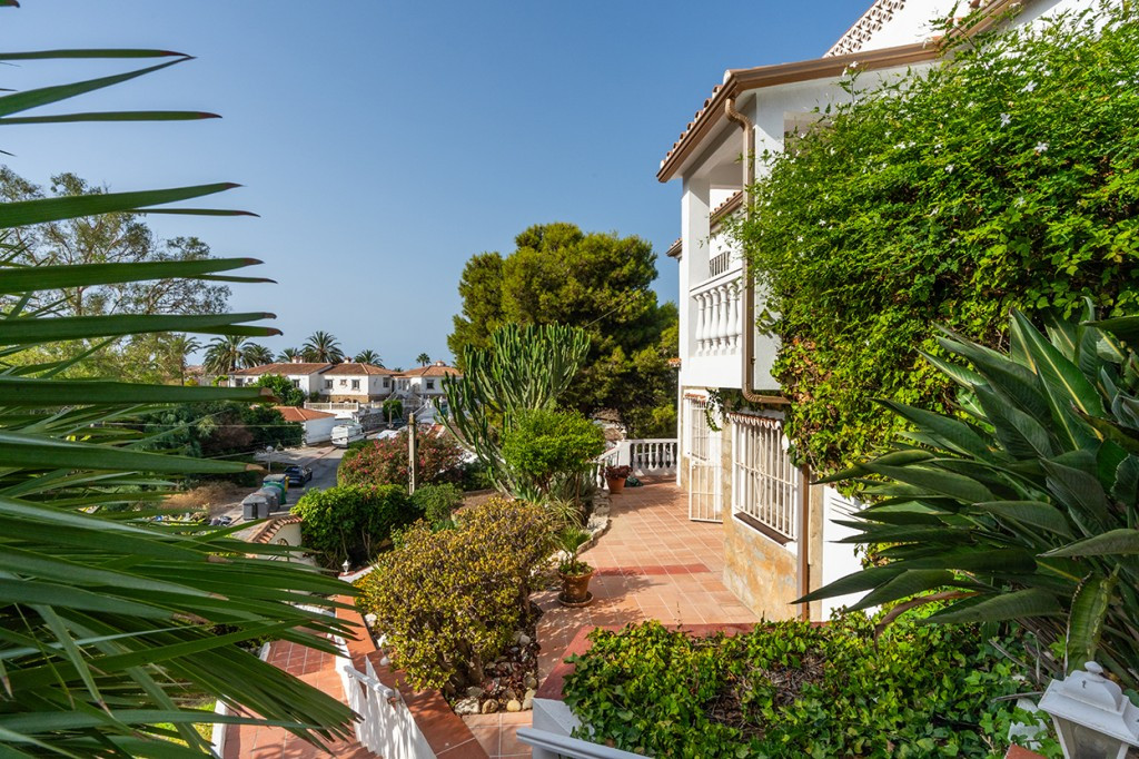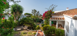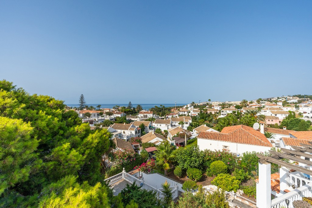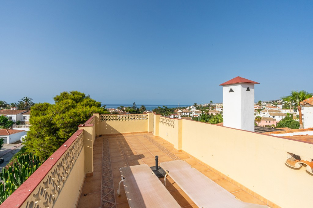 Casa tradicional en El Faro en Mijas-Costa con dos niveles y con hermosas vistas al mar que ofrece en la residencia principal una sala de estar con comedor independiente y luminosa terraza, cocina, dos dormitorios y dos baños. El apartamento de invitados ofrece una sala de estar, cocina y un dormitorio y baño. La casa tiene una bonita azotea con sol todo el día, trastero y amplio garaje. Calefacción central de gas en el apartamento de invitados y suelo radiante en la casa principal. Casa familiar ideal a un paso de la playa y de Fuengirola.