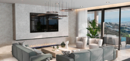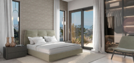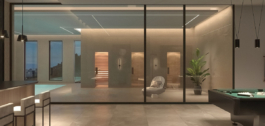 El diseño interior de la villa consta de dos cubos de cristal, lo que permite disponer de un espacio abierto adicional donde encontrará un hermoso olivo y podrá disfrutar fumando shisha. Gracias a las ventanas del suelo al techo, la villa es muy luminosa y está llena de luz natural. Estas ventanas no sólo inundan el interior de sol, sino que también cuentan con protección solar, lo que garantiza un ambiente cómodo y agradable durante todo el año.