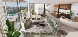 El llamativo diseño contemporáneo de la villa invita a la luz natural a inundar los interiores a través de amplios elementos de cristal, destacando la conexión perfecta entre los espacios interiores y exteriores. La distribución diáfana garantiza un flujo armonioso, mientras que las generosas terrazas ofrecen el entorno ideal para relajarse y divertirse. Desde elegantes rincones chill-out hasta una zona de asientos hundida, una cocina exterior y un comedor al aire libre, Villa ofrece una gran variedad de opciones para vivir al aire libre. En el interior, la cocina de vanguardia y los interiores meticulosamente cuidados encarnan la elegancia atemporal. Las seis lujosas habitaciones incluyen una exquisita suite principal con terraza privada, vestidor y baño tipo spa, todo ello diseñado para maximizar el confort y el estilo.