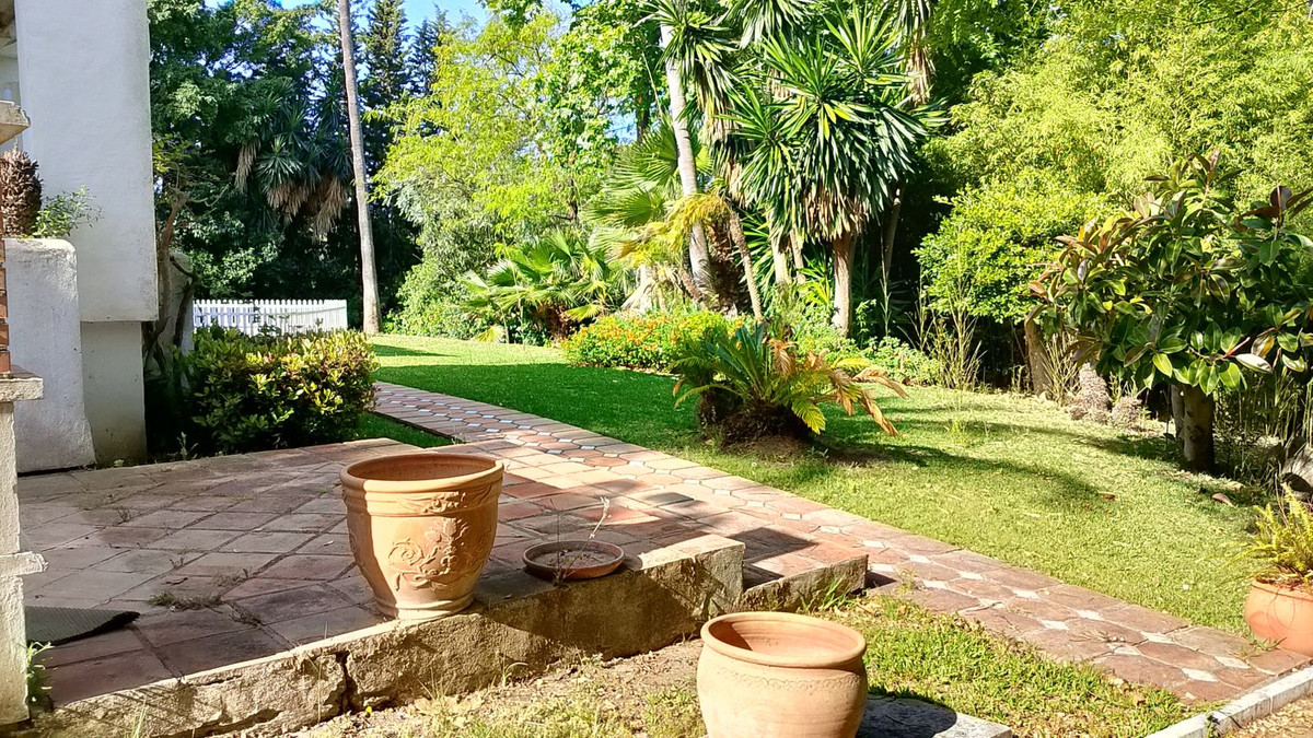 Características exteriores: piscina, solarium, barbacoa, terrazas, jardines maduros