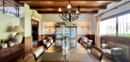COMENZAMOS CON UN ACOGEDOR HALL DE ENTRADA CON PUERTAS DE HIERRO. ESTA VILLA TIENE UN TOTAL DE 4 DORMITORIOS BIEN DISTRIBUIDOS Y 3 BAÑOS, UN SALON ABIERTO CON CHIMENEA CONECTADO CON EL COMEDOR. UNA COCINA MUY AMPLIA CON ENTRADA DE SERVICIO INDEPENDIENTE. LA PROPIEDAD CUENTA CON UNA TERRAZA CUBIERTA FASTÁSTICA CON ARCOS Y LA PISCINA PRIVADA DE 6X12 METROS.