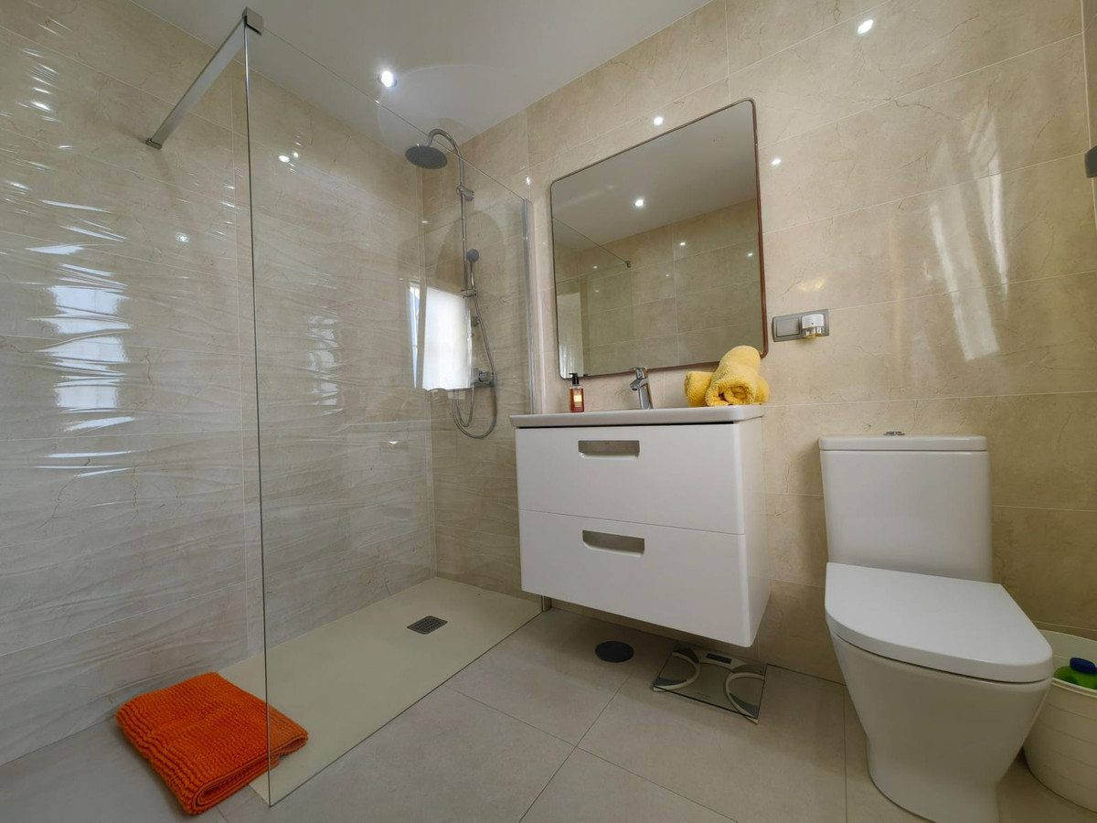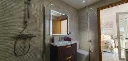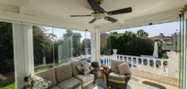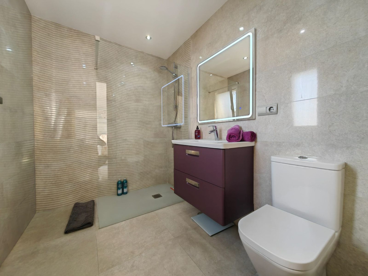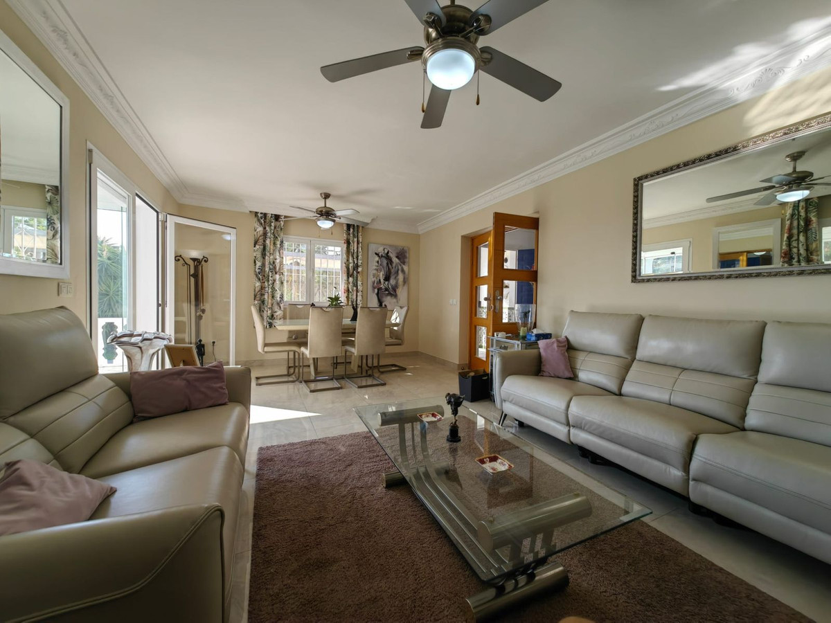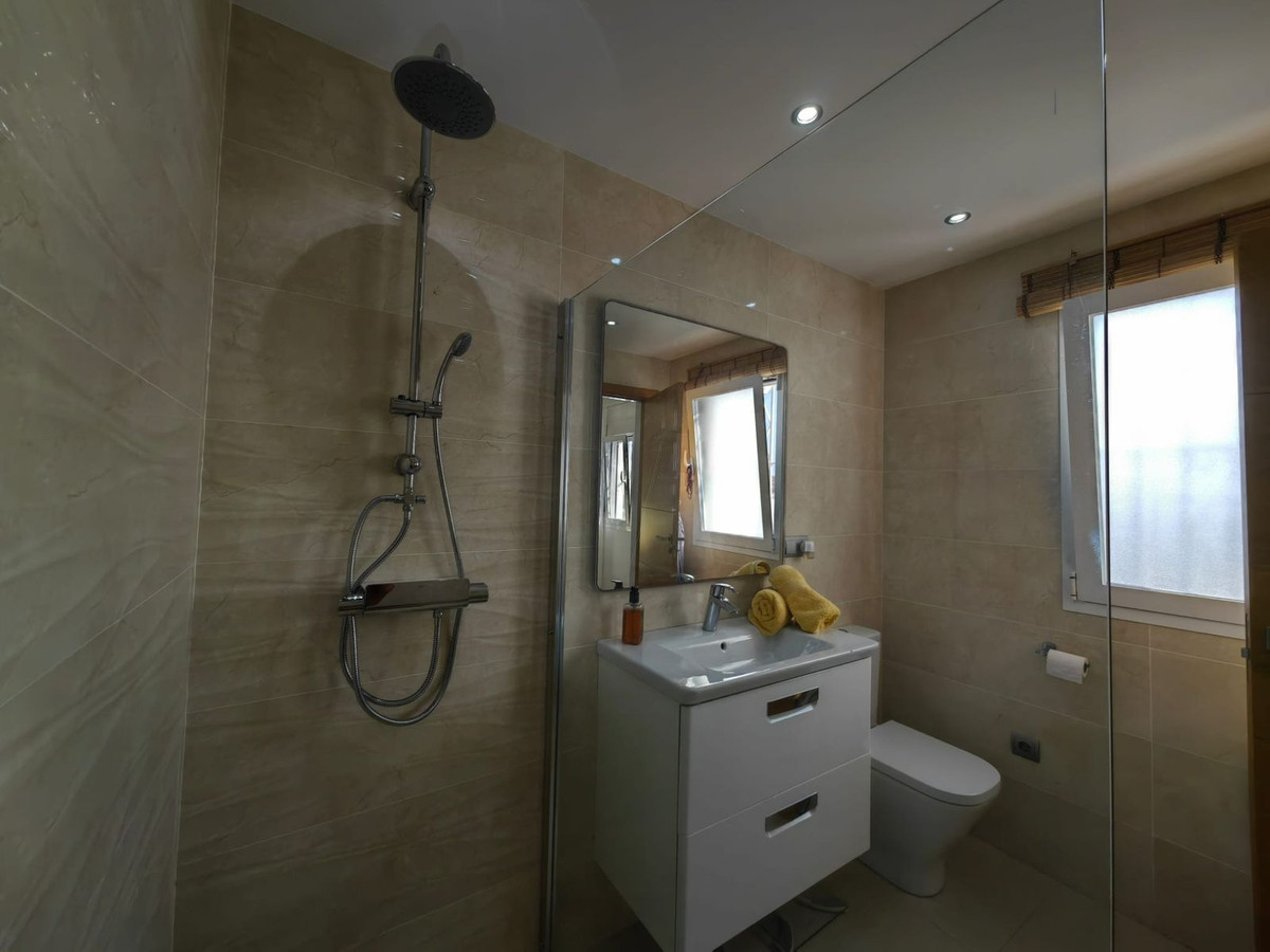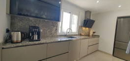 En el corazón de la casa se encuentra una moderna cocina totalmente equipada con un práctico fregadero y una entrada secundaria para mayor comodidad. La amplia zona de estar y comedor se abre a una terraza cubierta con cortinas de cristal, perfecta para disfrutar todo el año, incluso en los días más fríos de invierno. Otra terraza abierta ofrece un lugar soleado con vistas a la piscina.