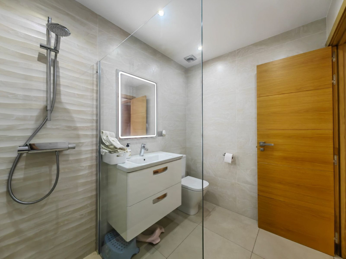 La villa cuenta con 4 amplios dormitorios y 4 baños, incluyendo 2 elegantes dormitorios en suite. Dos de los dormitorios disfrutan de sus propias terrazas privadas con vistas parciales al mar, al jardín y a la piscina.