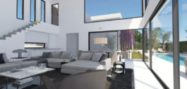 Esta villa de lujo se encuentra actualmente en construcción, lo que permite su personalización según los gustos y necesidades del cliente. Cuenta con 3 amplios dormitorios en la planta principal, más un cuarto dormitorio en la planta superior junto a la terraza.