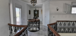 Bonita y elegante villa en un lugar idílico y tranquilo cerca de la playa de laguna y Estepona. Cerca encontrará restaurantes y supermercados. La propiedad tiene un gran jardín con piscina, palmeras y cochera para 4 coches, así como una zona de aparcamiento para más de 10 coches. Esta casa de dos plantas se encuentra en perfecto estado con 5 dormitorios y 5 baños. El salón con chimenea y acceso directo al jardín y a la zona de la piscina es un punto central de la villa. Una fabulosa galería adorna el salón y le confiere un techo de 6 metros de altura. La cocina totalmente equipada da acceso a un comedor adicional. En la zona de entrada también hay un despacho clásico, que puede convertirse fácilmente en otro dormitorio. Desde la propiedad se disfruta de unas impresionantes vistas panorámicas al mar y a la montaña.