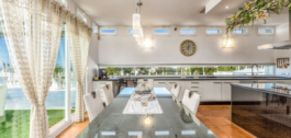 La cocina, de concepto abierto y totalmente equipada, fluye a la perfección hacia las distintas zonas de estar, tanto interiores como exteriores. Estos espacios han sido concebidos para maximizar la funcionalidad y la luz natural, adaptándose a diferentes entornos: desde zonas de relax hasta espacios perfectos para reuniones sociales. La villa también incluye una sala de fiestas y una zona independiente para invitados, lo que amplía aún más las posibilidades de entretenimiento sin interferir en la privacidad de la residencia principal.