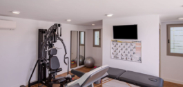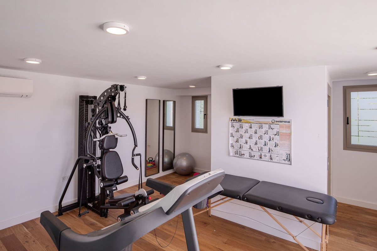 En cuanto a equipamiento y tecnología, la vivienda cuenta con ascensor propio Thyssenkrupp, que conecta las tres plantas, sistema domótico Lutron integrado y alarma, calefacción por suelo radiante y aire acondicionado con control de zonas por aire Daikin. La carpintería exterior es de aluminio, con rotura de puente térmico, de Schuco, y la interior de Román Clavero. Toda la grifería y sanitarios son Hansgrohe y Duravit, líneas de diseño de Philippe Stark. Amplio aparcamiento cerrado para dos coches. Gimnasio cerrado equipado en la planta solarium.