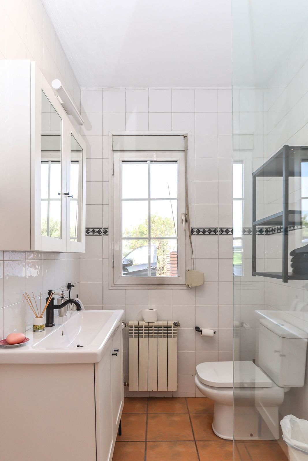 En la parte trasera de la villa, encontrará varios trasteros, incluido uno que alberga la lavadora.