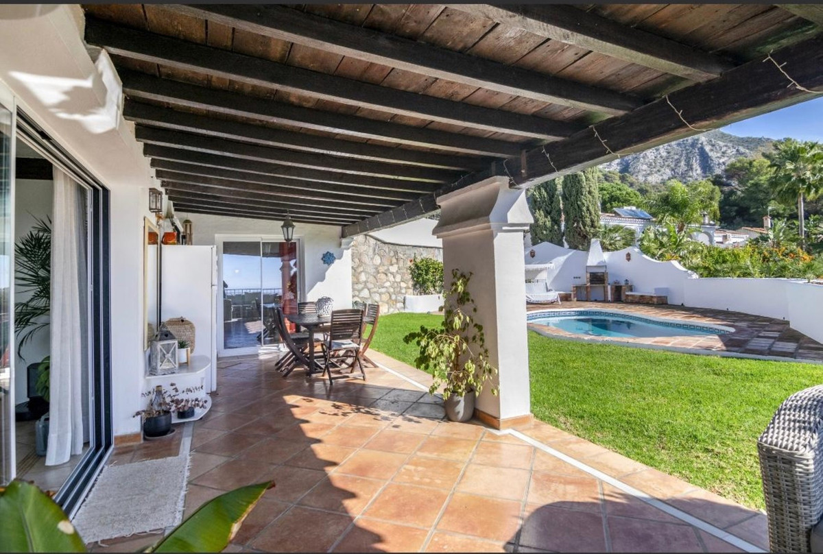 Situado en la fantástica zona de Cerros del Lago, en la carretera de Istán. Este espectacular chalet unifamiliar combina calidez y confort en un entorno privilegiado, rodeado de la belleza natural de la sierra y vistas panorámicas. Construido sobre una parcela de 494 m², la propiedad está construida en 1 nivel y cuenta con 204 m² de superficie construida y 2 terrazas privadas, perfectas para disfrutar de la vida al aire libre y sus vistas panorámicas abiertas del lago de Istán, las montañas hasta el mar Mediterráneo. Un encantador jardín con piscina privada.