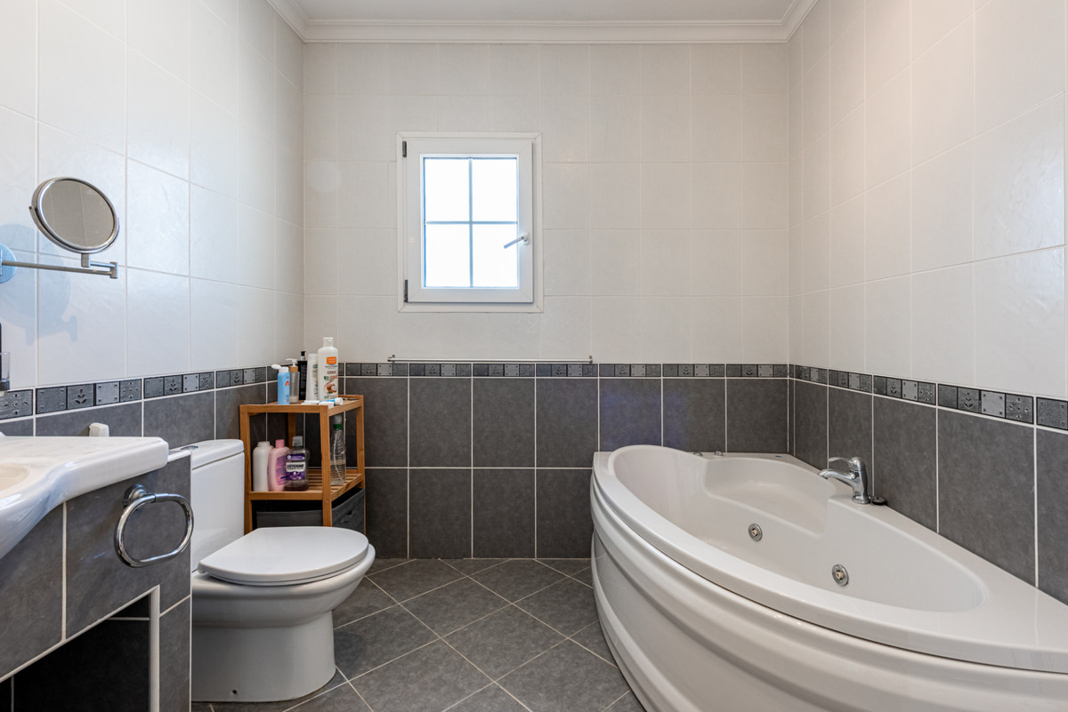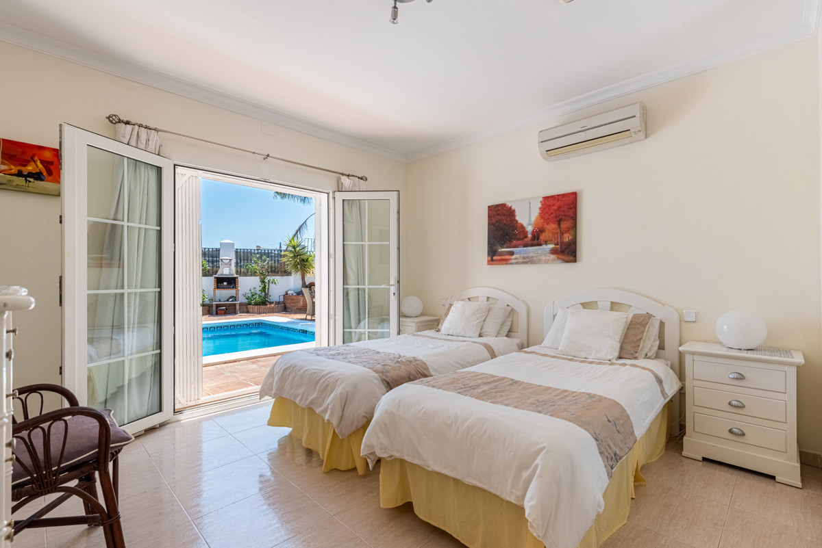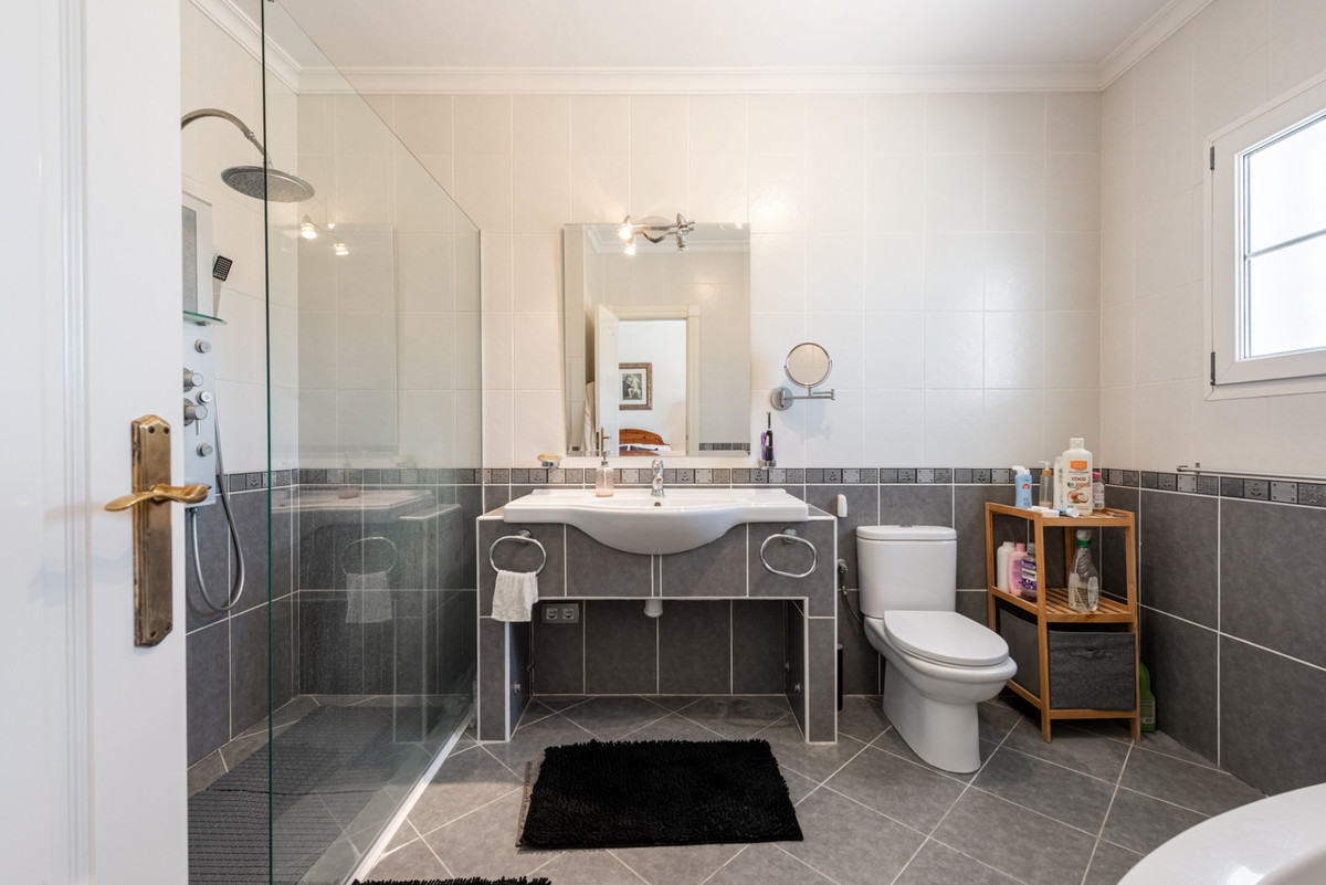 Esta exquisita villa ofrece una armoniosa combinación de calidad y confort. El propietario construyó la casa él mismo hace 20 años, lo que garantiza la calidad en todo. Es un hogar perfecto para la familia grande con hasta siete dormitorios, incluyendo un apartamento independiente. La villa tiene siete dormitorios y seis baños, cinco de los cuales tienen su propio cuarto de baño y un aseo adicional. Un apartamento independiente con tres habitaciones y cocina ofrece un alojamiento perfecto para invitados, hijos adultos o como unidad de alquiler. Todas las habitaciones están equipadas con aire acondicionado y armarios empotrados. El dormitorio principal tiene un generoso vestidor.