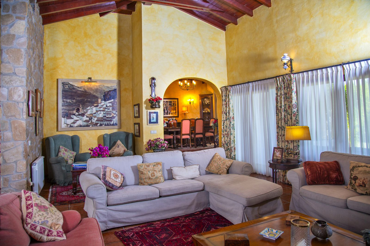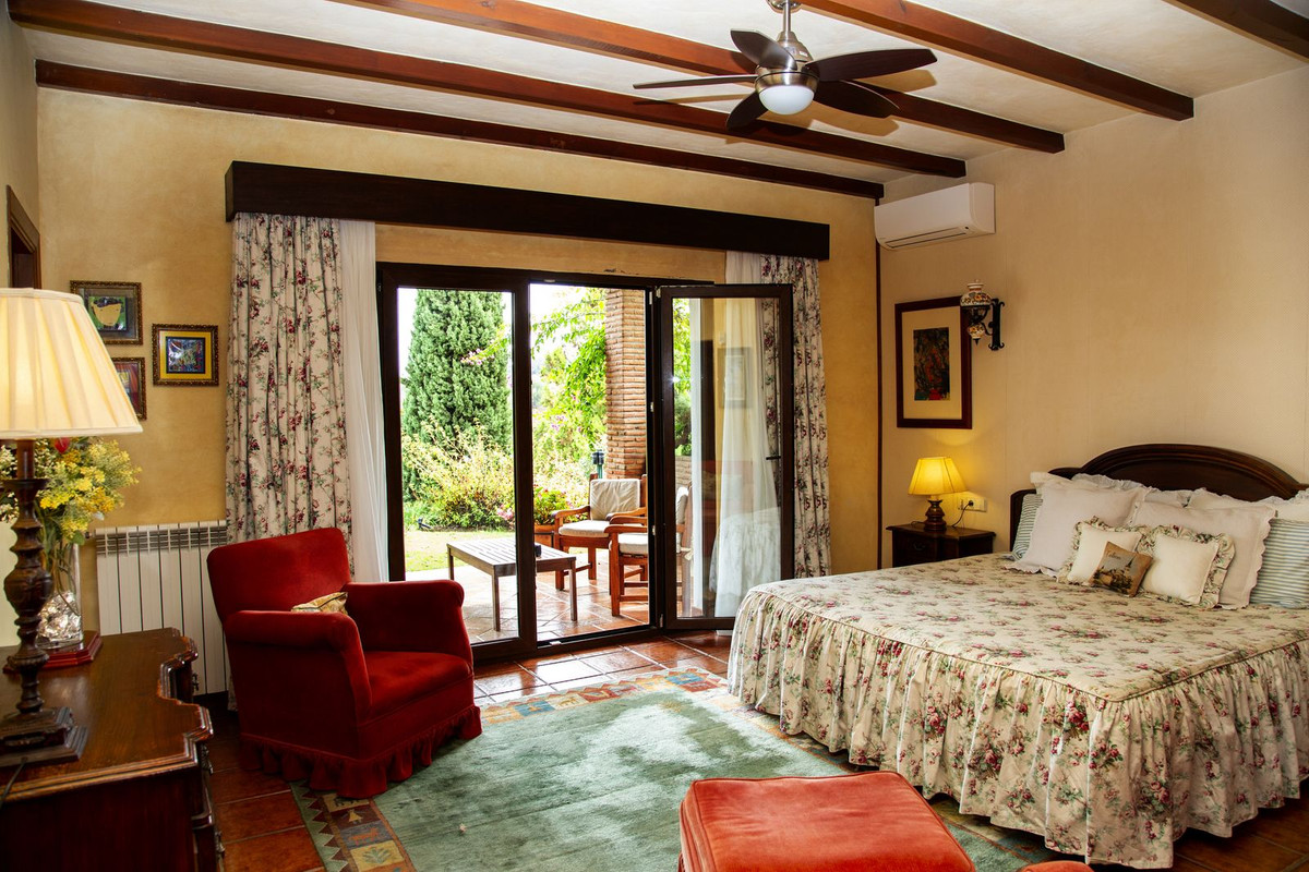 Chalet de 6 dormitorios con 4 baños y aseo. La vivienda consta de 575 m2 construidos, además de encantadores espacios exteriores, como porches, terrazas, patios que suman 144 metros cuadrados, y jardines en toda la propiedad para disfrutar de diferentes sensaciones, ambientes y vistas. La propiedad está situada en una parcela de 10.000 m2, donde hay, además de la casa, amplios espacios para disfrutar de diferentes actividades: la zona de piscina de 12 metros de largo, rodeada de un gran césped de bermudagrass, para nadar, tomar el sol y relajarse o practicar algún deporte en la pista de tenis de alta calidad con iluminación nocturna . Un edificio de 85 m2 independiente de la casa, antiguamente utilizado como establos, se ha convertido ahora en una oficina y taller equipado con toda la maquinaria y herramientas necesarias para el mantenimiento de la finca. Este edificio, si se desea, podría convertirse fácilmente en una casa para invitados o para el personal.