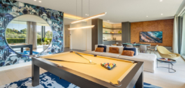 El nivel inferior es un paraíso para el ocio y el bienestar, con un gimnasio, un tranquilo spa y una zona de ocio con mesa de billar, mesa de póquer y home cinema.