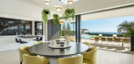 La villa cuenta con una sala de estar de planta abierta perfectamente conectada a una moderna cocina y comedor, creando un ambiente perfecto para la relajación y el entretenimiento. Las amplias puertas acristaladas bañan el interior de luz natural y ofrecen impresionantes vistas de los alrededores y del mar Mediterráneo. La planta baja cuenta con cuatro dormitorios de generosas dimensiones, incluyendo una opulenta suite principal con vestidor y baño en-suite.