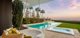 En el exterior, el jardín, meticulosamente ajardinado, rodea una piscina privada y un jacuzzi que invitan a relajarse con estilo. Una zona chill-out exterior ofrece el marco perfecto para disfrutar del clima idílico y las vistas serenas.