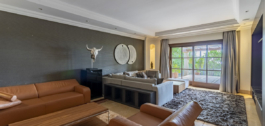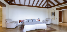 Arriba, la primera planta alberga dos lujosos dormitorios en suite, incluyendo una gran suite principal con vestidor y sala de estar privada. El segundo dormitorio es una suite de invitados igualmente espaciosa, ambos con impresionantes vistas al mar.