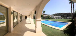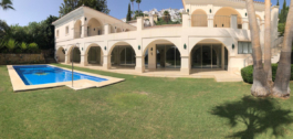 La mejor propiedad en Los Arqueros en venta. Villa de lujo en primera línea de golf totalmente equipada situada en Los Arqueros con gran parcela mirando directamente a la mejor zona de la Comunidad, mirando directamente al campo de golf, al gran Lago y a la Montaña de La Concha de Marbella, y también al mar.
