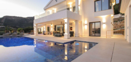 La villa cuenta con amplios espacios diseñados pensando en la comodidad y la elegancia. El salón de planta abierta cuenta con grandes puertas de cristal que inundan el espacio de luz natural, combinando a la perfección el interior con el exterior. Los suelos de mármol añaden un toque de sofisticación, mientras que el moderno mobiliario y la decoración proporcionan un ambiente contemporáneo a la vez que acogedor.