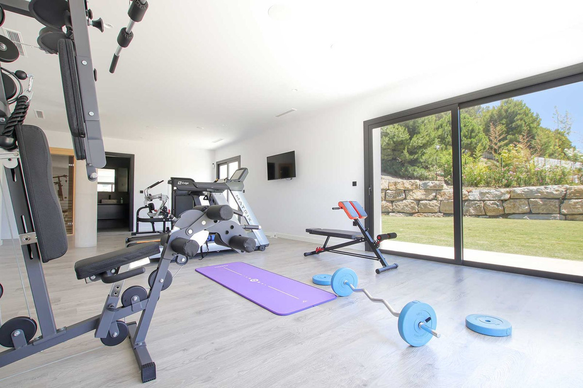 Las opciones de entretenimiento abundan en esta villa. Incluye una gran sala de cine perfecta para noches de películas con la familia y los amigos. Para los que dan prioridad al bienestar, la propiedad cuenta con un gimnasio totalmente equipado, una sauna y una impresionante piscina infinita con vistas a los exuberantes campos de golf y a las montañas circundantes. También hay una bodega y un bar donde se pueden servir bebidas, perfecto para celebrar reuniones y disfrutar de buenos vinos.
