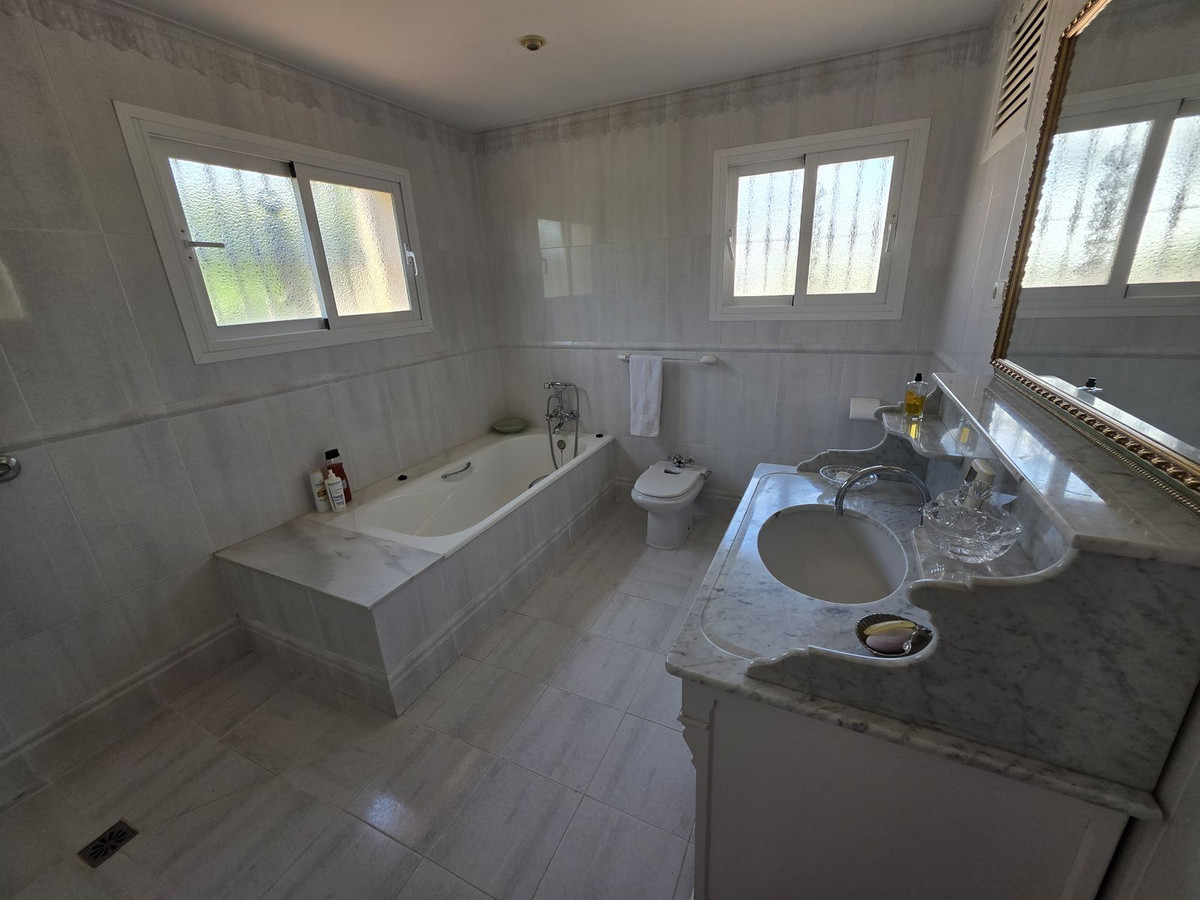 Villa de auténtico estilo andaluz, idealmente situada en Marbesa y diseñada para ofrecer confort y tranquilidad. Con un exuberante jardín privado y una piscina privada, esta residencia se encuentra a sólo 700 metros de la playa, así como restaurantes y campos de golf. Cerca del aeropuerto y de la ciudad de Marbella y Málaga. La cocina totalmente equipada invita a los huéspedes a preparar deliciosas comidas, mientras que el amplio salón/comedor ofrece un acogedor espacio para relajarse y disfrutar de momentos inolvidables con amigos y familiares. La planta baja le ofrece, además del salón, la cocina y un despacho o dormitorio si lo desea, una suite principal con su vestidor y su cuarto de baño en-suite y acceso directo al jardín y a la piscina. En la planta superior, encontrará un cómodo dormitorio con vestidor y un gran cuarto de baño, así como acceso a otra terraza. La propiedad también cuenta con un garaje privado. Gran ubicación en Marbesa, entre Elviria y Cabopino, a poca distancia de la playa y varios restaurantes;