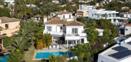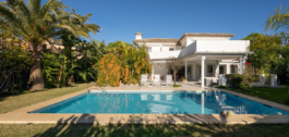 Esta encantadora y luminosa villa de estilo andaluz está situada en el centro de la popular urbanización de Marbesa.