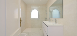 En la primera planta hay TRES dormitorios más con 2 baños en-suite y armarios empotrados, y dos tienen acceso a una terraza muy amplia, privada y soleada con vistas al mar.