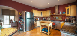– Cocina bien equipada con una isla central y mucho espacio de almacenamiento.