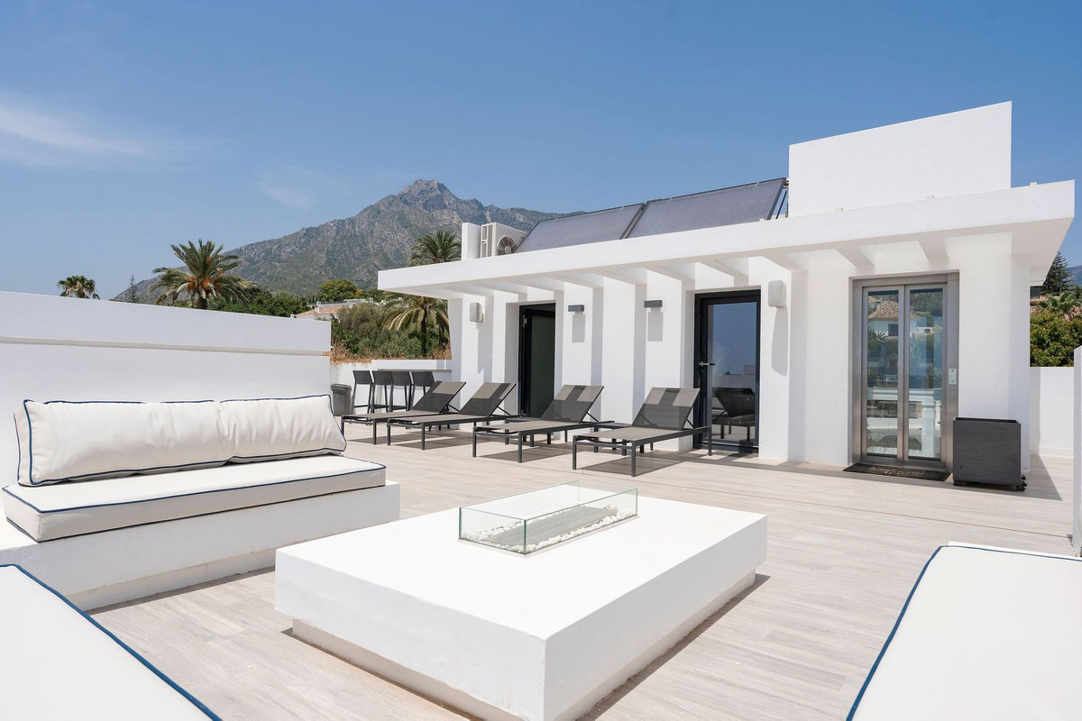 Una impresionante villa de lujo moderna en Nagueles, Marbella Milla de Oro que ofrece fácil acceso al centro de Marbella ya sólo 10 minutos en coche de Puerto Banús. La propiedad está construida con las más altas especificaciones con gran atención al detalle y el uso de materiales de primera calidad e instalaciones en todo. La villa se distribuye en tres niveles todos conectados con un ascensor incluyendo zona de sótano, además de una amplia terraza solarium en la azotea. La planta sótano incluye garaje privado con mecanismo giratorio, zona de ocio con sala de TV, un bar de tamaño completo, salón; dormitorio de buen tamaño para el personal/huéspedes con baño en-suite, lavadero, aseo de invitados y sala técnica. El nivel de entrada consta de hall de entrada, aseo de invitados, un dormitorio en suite, amplio salón, una oficina, comedor y cocina americana que se abre a la gran terraza que conduce a la piscina privada. El dormitorio principal se encuentra en la primera planta e incluye un gran cuarto de baño en-suite y vestidor. Esta planta también incluye 2 dormitorios adicionales. La azotea de 98m² ofrece vistas panorámicas al mar y a la montaña y es ideal para el entretenimiento al aire libre y también incluye una zona chill-out, baño y trastero.