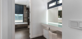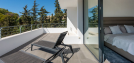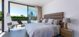 La primera planta alberga otros tres dormitorios, cada uno con su propio cuarto de baño. El dormitorio principal es particularmente especial, ya que está situado en el centro de la casa y cuenta con dos amplias terrazas orientadas al sur y al este que permiten disfrutar de impresionantes amaneceres y puestas de sol.