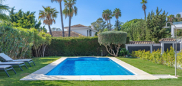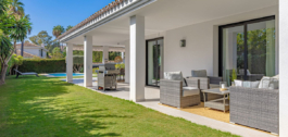 Esta fantástica villa está situada en pleno Valle del Golf en Nueva Andalucía, una zona tranquila y muy atractiva con proximidad a campos de golf como Las Brisas, Los Naranjos y Aloha Golf.