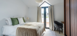 Planta alta con dos dormitorios en-suite y un balcón accesible desde ambas habitaciones con unas vistas preciosas donde se puede intuir La Concha y el campo de golf Los Naranjos.