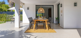 Grandes puertas correderas de cristal que proporcionan luz natural a toda la villa.