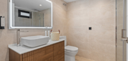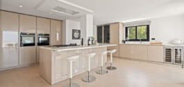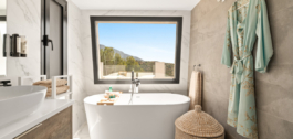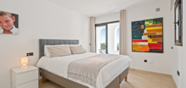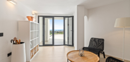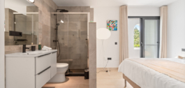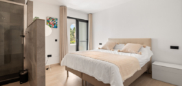 La cocina cuenta con electrodomésticos integrados y armarios minimalistas que combinan la funcionalidad con una estética depurada. La suite principal incluye un vestidor a medida, cuarto de baño en suite y acceso a una terraza privada con orientación sur y vistas ininterrumpidas.