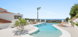 Situada en una de las zonas residenciales más codiciadas de Marbella, esta villa de cinco dormitorios y cinco baños ofrece vistas panorámicas y frontales al mar Mediterráneo, la montaña de La Concha y Puerto Banús. Ubicada en una parcela de 1.950 m², la propiedad incluye 444 m² de espacio interior y más de 300 m² de terrazas, diseñadas para resaltar el volumen, la luz y la privacidad.
