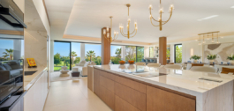Con una arquitectura sin igual y una calidad de construcción inigualable, la villa ofrece una vida sofisticada y contemporánea, situada en una parcela privada dentro de una comunidad segura con impresionantes vistas panorámicas en primera línea hacia el campo de golf Los Naranjos. Villa goza de una posición privilegiada en una de las zonas más codiciadas de Marbella, rodeado de una gran cantidad de servicios, desde restaurantes, centros deportivos, supermercados ya pocos minutos de la playa y el famoso Puerto Banús. Esta villa única cuenta con 5 plantas de características de última generación en todas partes. Le da la bienvenida a una amplia sala de estar, complementada por una cocina gourmet diseñada a medida, con una gran isla de piedra natural con asientos y un exclusivo armario de vinos.