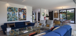 Fantástica villa contemporánea con vistas a la montaña en Parcelas del Golf, una zona residencial privada y segura en el Valle del Golf de Nueva Andalucía. Distribuida en tres niveles, esta villa de lujo ofrece amplios espacios interiores bañados en luz natural extendidos por enormes terrazas que dan a una gran piscina y magníficos jardines mediterráneos, una cocina ultramoderna totalmente equipada con electrodomésticos Balay de alta gama, 7 dormitorios, 6 baños, uno de los dormitorios con dos ventanas que dan al nivel inferior con vistas a los coches. Ascensor a todos los niveles, solarium de 200 m2, zona de barbacoa, jacuzzi, rara construcción de piedra de Portugal y aparcamiento exterior para 5 coches. Una propiedad sublime en un entorno excepcional a sólo 5 minutos en coche de Puerto Banús, la playa y todos los servicios.